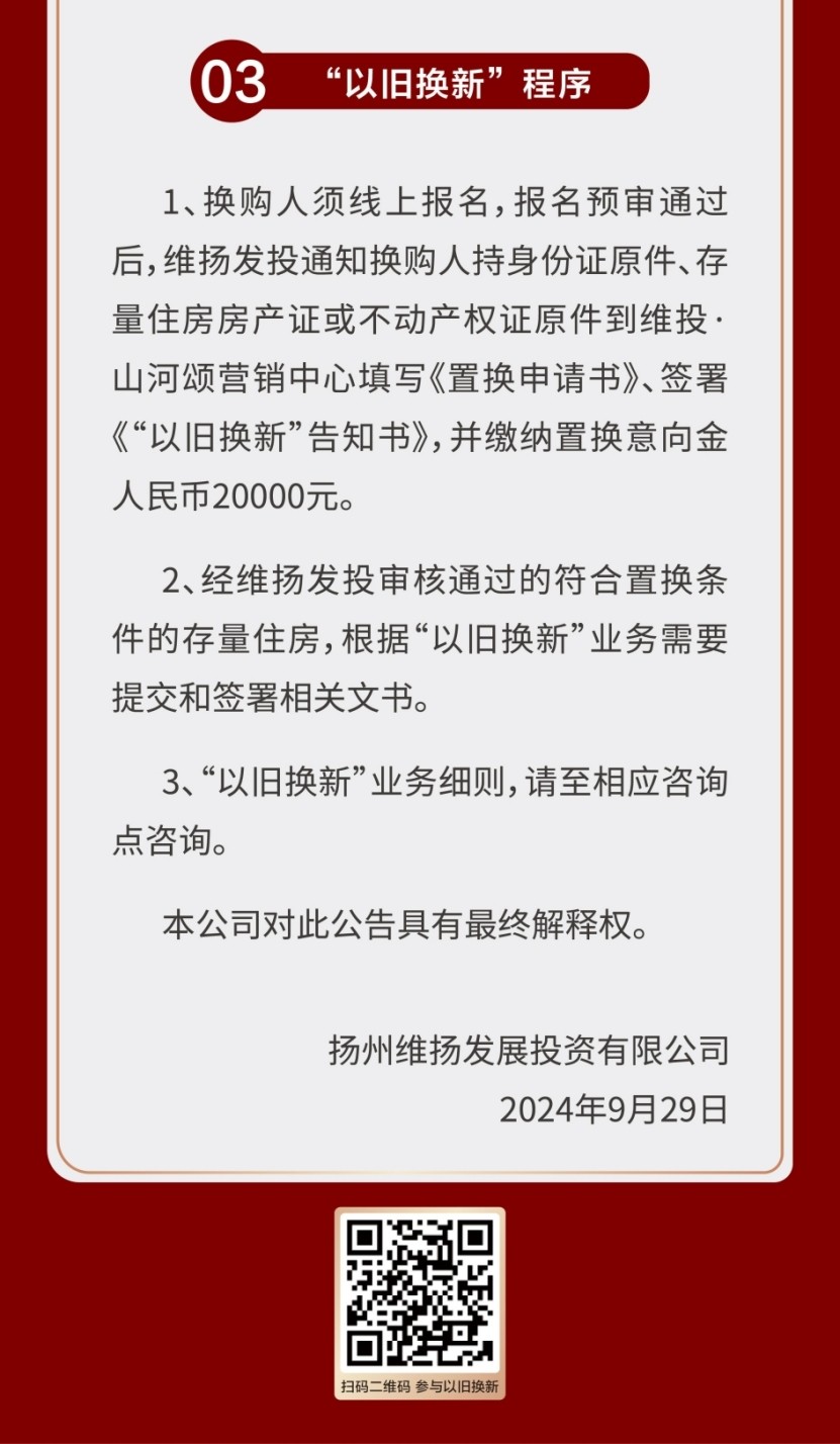 揚(yáng)州維揚(yáng)發(fā)展投資有限公司商品住房“以舊換新”公告